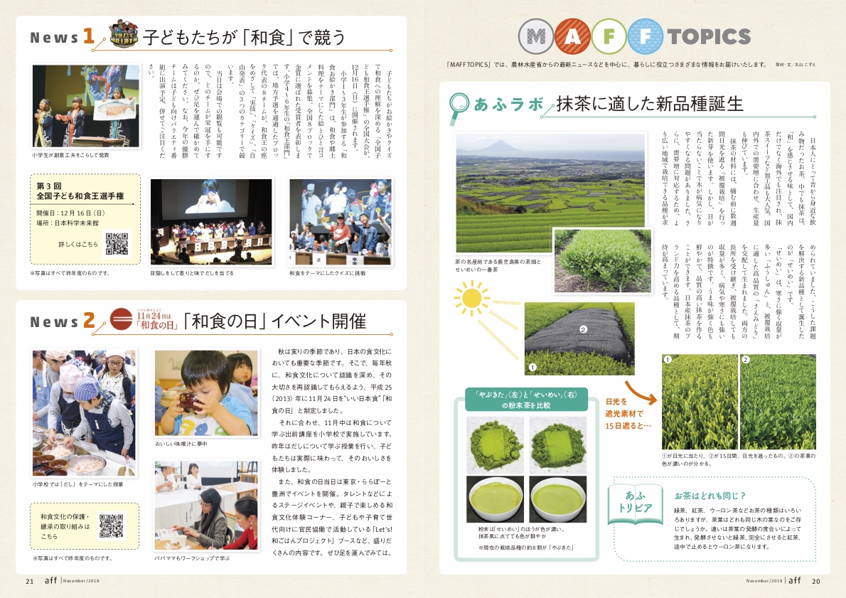 MAFF TOPICS(1) あふラボ 抹茶に適した新品種誕生