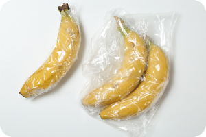 バナナは常温だと追熟してすぐにやわらかくなってしまうので、1本ずつラップで包みポリ袋に入れて野菜室に保存しましょう。皮が黒くなっても実の熟成は進みません。
