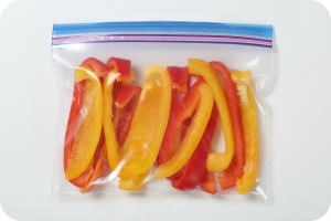 パプリカは細切りや乱切りなど、食べやすく切ってから冷凍用保存袋に入れ、空気を抜いて冷凍します。凍ったままでも炒め物やマリネに使え、自然解凍をして水気を絞ればお浸しとしても便利に使用できます。赤・黄パプリカをミックスして冷凍すると調理時に便利です。