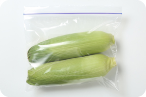 とうもろこしは収穫後から時間が経つにつれて栄養価と甘味が落ちてしまうので、長期保存するなら冷蔵ではなく冷凍がおすすめです。ヒゲと外側の汚れている葉を数枚取り除き、そのまま冷凍用保存袋に入れて空気を抜いて冷凍します。使用時には凍ったまま熱湯で茹でるか、電子レンジで加熱調理しましょう。