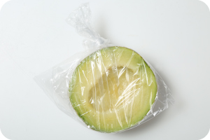 メロンは水分が多いタネとワタから傷みます。食べやすい大きさに切り分けてタネとワタを取り、空気が入らないように切り口にラップを被せた後に、ポリ袋や保存容器に入れます。冷えすぎると甘味が減ってしまうので、野菜室で保存しましょう。