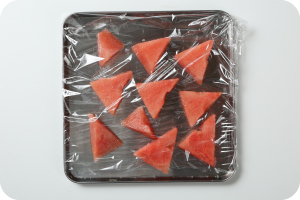 すいかの保存に適した温度は10度から15度。冷えすぎると甘味がなくなってしまうので、切り分けたものは空気が入らないように切り口にラップをかぶせ、ポリ袋に入れてから野菜室で保存しましょう。