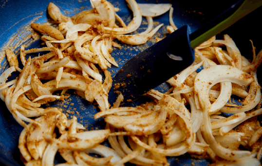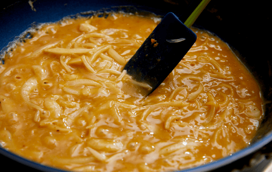 3)がフツフツしてきたら、玉ねぎを加えてしんなりするまで炒める。