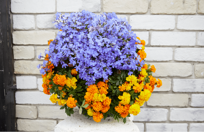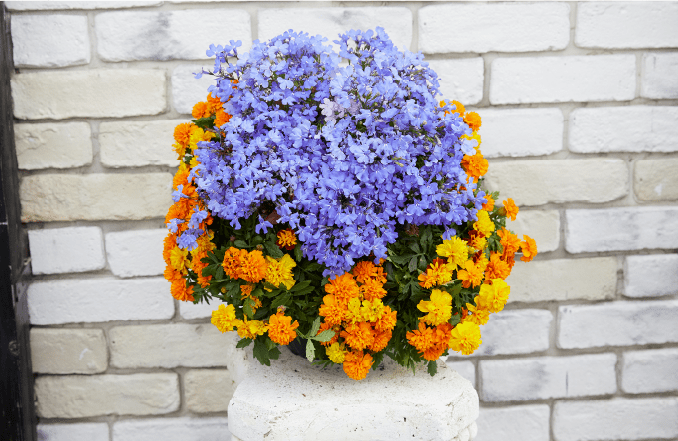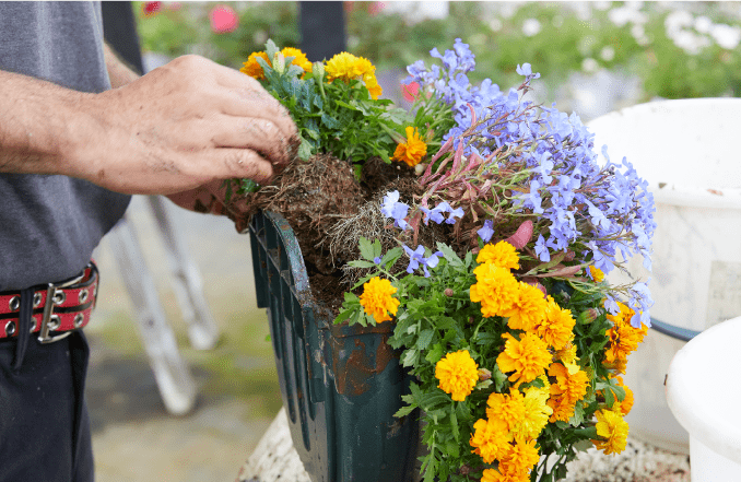 (今回はマリーゴールド 9ポット、ロベリア 5ポット) -