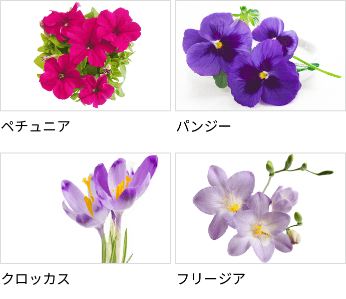 (例:春/パンジー、夏/ペチュニア+合わせるカラーリーフ) -