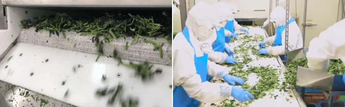 トンネルフリーザーに入れて-30度で3分間急速凍結し、おいしさと鮮度をキープ。バラ凍結にすることで、解凍時間が少なくなり食感も向上。洗う・切るの手間もなく、好きな分だけ使える利便性も追求しています。
