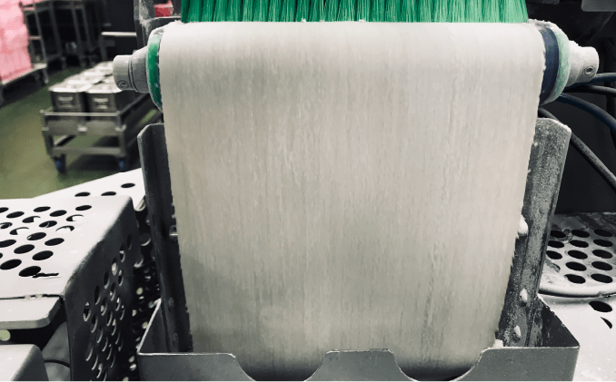 小麦粉、塩、水を手でこね合わせるようにし、皮をつくります。減圧されたミキサーの中でムラなく均一に混ぜ合わせること(真空混合)によって、コシのある皮ができます。