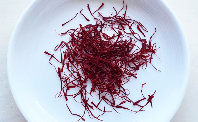 花のめしべを手摘みして採取し、乾燥させて作るサフランは、一般に流通している香辛料の中でも貴重で高価。清らかな強い香りが特徴ですが、主に色付けに使用され、鮮やかな黄色が印象的なパエリアがその代表格です。 -
