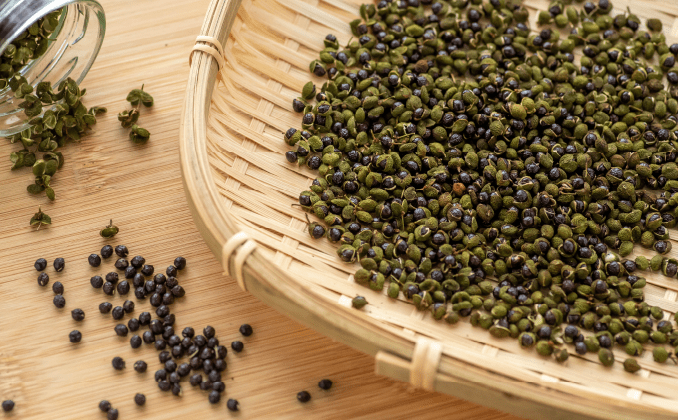 原産地は日本、中国などの東アジア。柑橘系の香りで、しびれるような辛みと刺激が特徴です。果皮を乾燥、粉末にしたものが使われ、蒲焼きや照り焼きなどのこってりとした料理に振りかければ爽やかさが増します。また、若葉は薬味として使われます。 -