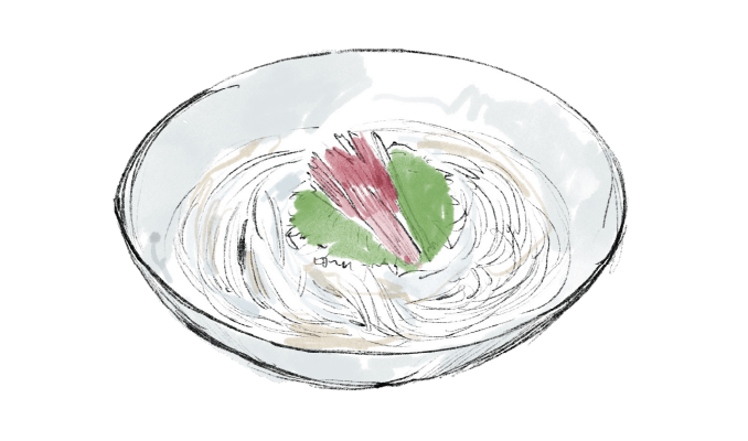 6月から8月頃に旬を迎える夏みょうが。淡白な味わいのそうめんにみょうがを合わせると、華やかな色と独特の香りが添えられて、味だけでなく視覚や嗅覚でも楽しめます。みょうがは色つやがよく、丸みがあって、身がしまっているものを選んでください。