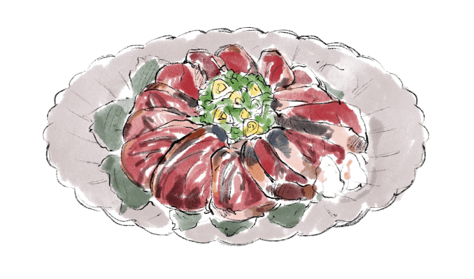 カツオの生臭さをとってくれるにんにく、大葉やしょうがなどの薬味。それらをミックスすることで、食べ進める中で味わいの変化が楽しめるのも魅力です。