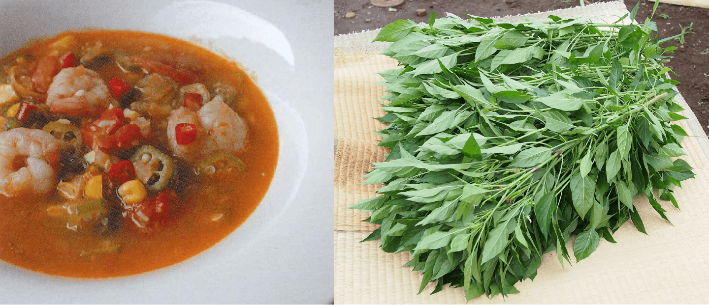 左:辛すぎず、香りと旨味があり、さまざまな料理に合う。右:葉も美味。成田さんのおすすめは葉とうがらしの佃煮とのこと。