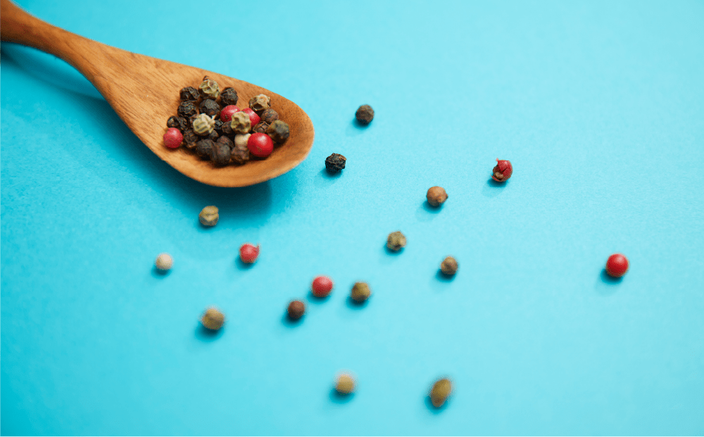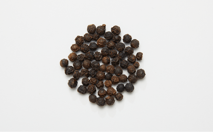 粒のままのこしょう。煮込みやマリネ液に漬け込むなど、じっくり香りや辛みを引き出すのに最適です。また、チャイやホットワインといったスパイスをきかせたドリンクでも楽しめます。