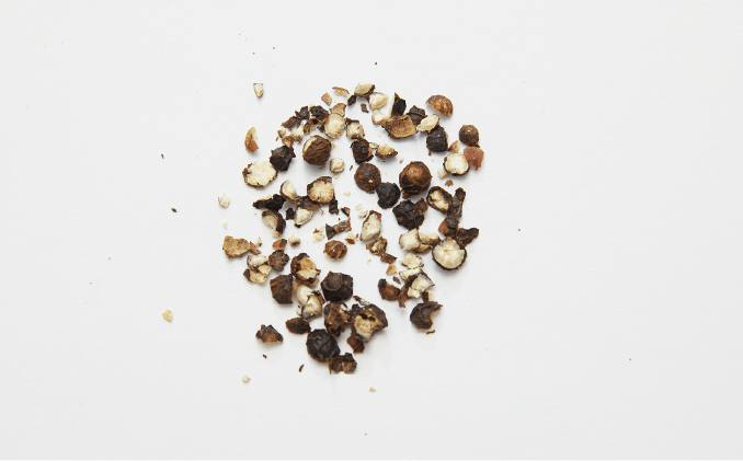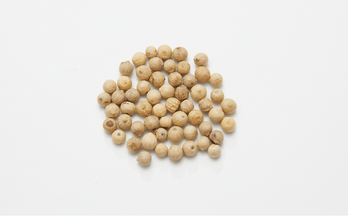 熟した赤色の実を水に浸して柔らかくし、果皮を除去して核の部分を乾燥させたもので、果皮がない分、風味もマイルド。風味や色を損なわずに辛味をつけられるので、白身魚などを使用した淡白な料理、グラタンやクリームシチューなど白く仕上げたい料理に使うと良いです。