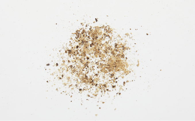粗挽きよりも少し細かく、粒からパウダーまで混在。下ごしらえや料理中、出来上がった料理など幅広く使えます。カプレーゼの仕上げなど、料理のアクセントとして程よい辛みを楽しみたいときに使います。