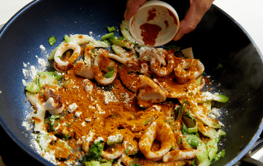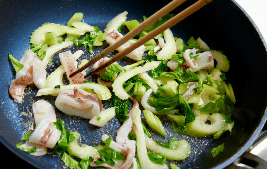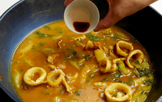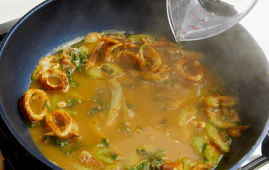炒め煮することで、ケンサキイカとセルリーの食感を楽しめるカレーになります。
