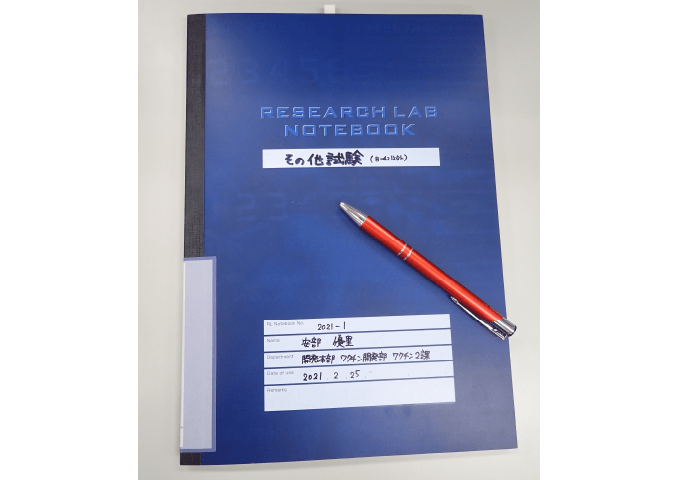 私たちの会社は基礎研究に関しても自由度が高く、いろんなアイデアを採用してくれるのでやりがいがあります。ですから、入社以来日々の研究結果を記録し続けてきた実験ノートは、私の研究者としての最大の財産です。