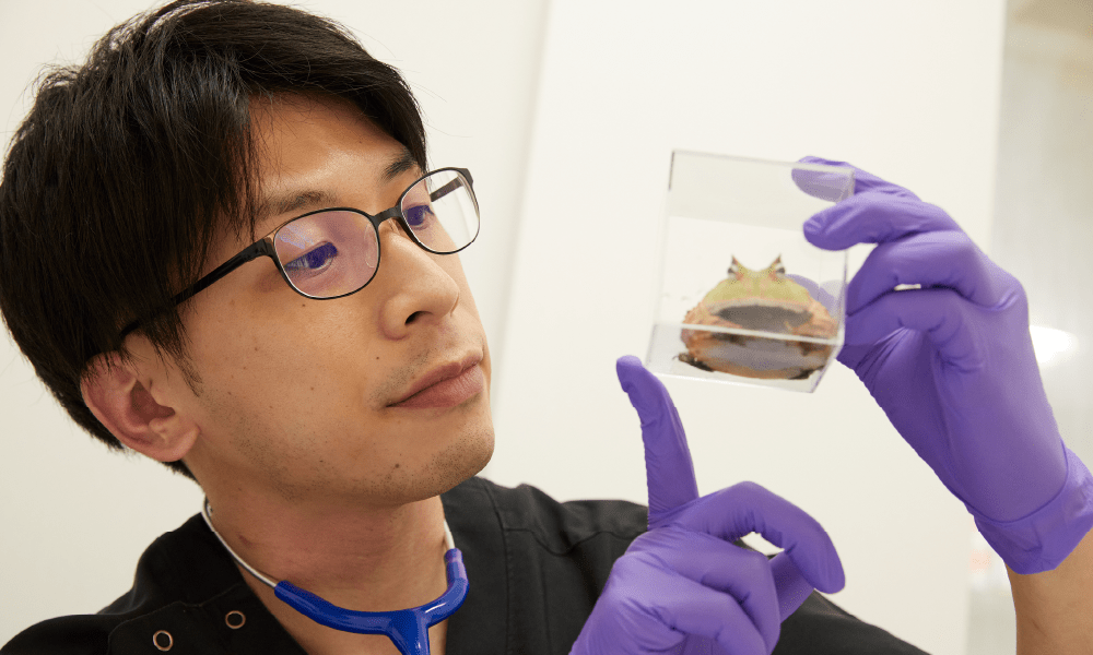 また、動物を飼育する方へのメッセージとして「近年はブームもあり、SNSだけの情報をもとに、準備をあまりしないなかで飼育を始める方が多いように感じます。特に動物が特殊であればあるほど、飼育環境が健康の決め手となります。まずは書物や経験者からしっかりとした知識を得た上で、飼育を始めて頂きたいと思います。」と同科を担当する伊村獣医師は語ります。