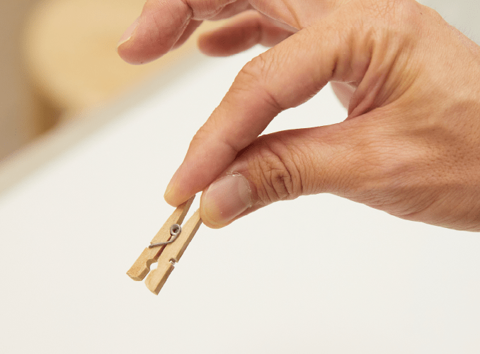 ウサギ用の止血クリップ。(耳から採血する際、クリップで挟んで血流を止めます)