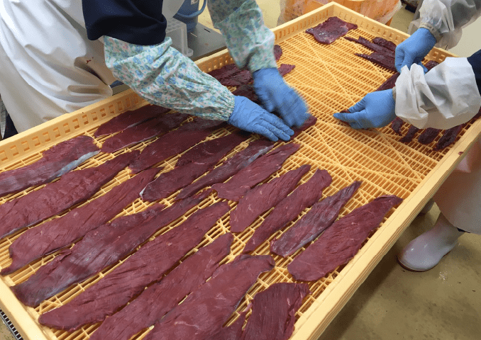 新鮮な鹿肉を乾燥させたシンプルなジャーキー。