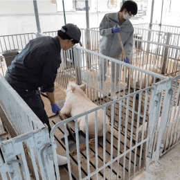 地域で生産されたトウモロコシや飼料用米、さらに地域で生産された小麦の製粉副産物(ふすま)などを用いて美味しい豚肉を生産するための研究を行っています。この研究によって飼料価格に影響を受けることなく、豚肉を安定的に供給することが可能になると考えています。私は今回の研究を通して、さまざまな人と関わることの大切さを学びました。将来はこの経験を活かし、食品メーカーの営業として頑張っていきたいと思っています。