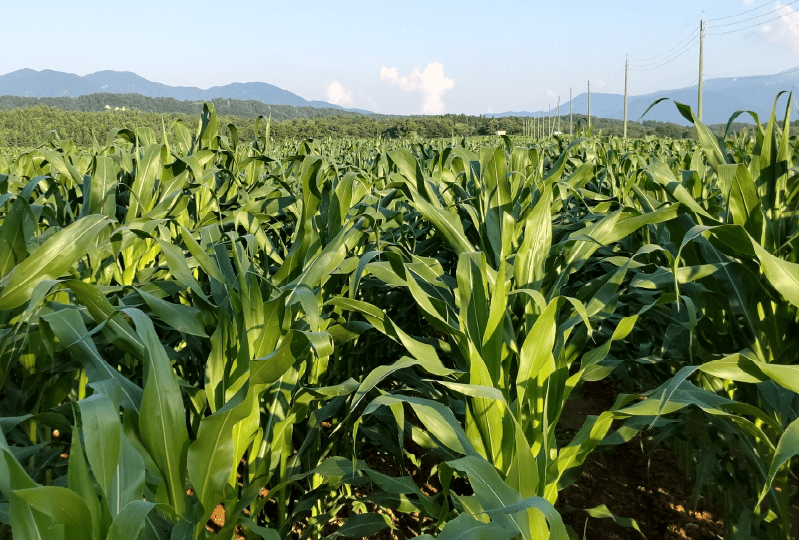 大豆連作障害圃場での子実トウモロコシ栽培。