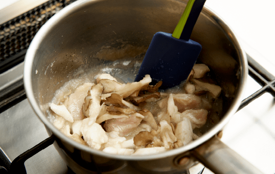 まいたけとたまねぎから出る水分のみで仕上げるので、素材のうま味が凝縮されています。