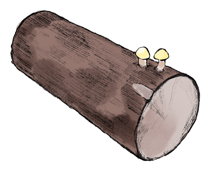 落ち葉や倒木、切り株などに生える菌で、セルロースやリグニンなどの植物体を構成する有機物素材を分解し、栄養分として利用します。腐生菌の生育によって分解された倒木や落ち葉は朽ちて、土へ還っていきます。腐生菌きのこの例として木の幹や枝などを分解する「木材腐朽(ふきゅう)菌」のシイタケやナメコ、落ち葉などを分解する「落葉分解菌」のマッシュルーム(ツクリタケ)などがあります。