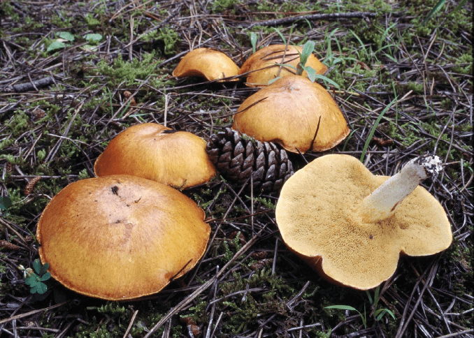 マツ林を代表する菌根性きのこ 「チチアワタケ(要注意きのこ:中毒をおこす可能性のあるきのこ)」(写真提供:千葉県立中央博物館・吹春俊光さん)。