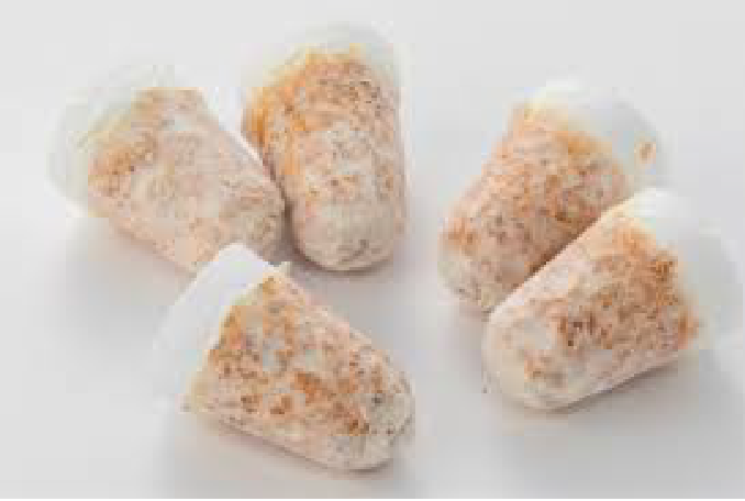 おが粉に米ぬかやふすまなどの栄養材を加え、水と混ぜ合わせて成形した培地に菌を植え付けてきのこを育てる方法です。主に屋内で栽培環境を管理するため、原木栽培では難しいきのこも栽培できます。えのきたけ、ぶなしめじ、まいたけ、エリンギなどがこの方法で栽培されています。
