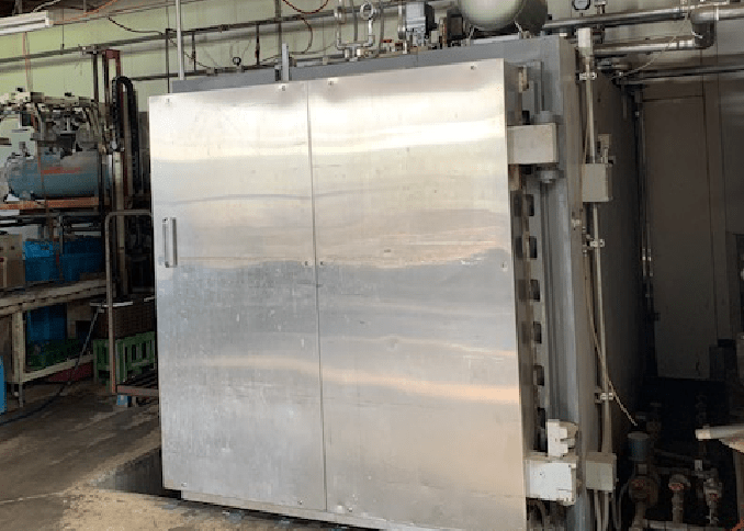 1の菌床を詰めた瓶に蓋をして高圧殺菌釜に入れます。最高120度の高熱で6時間から7時間加熱して十分に殺菌し、その後、一晩おいて冷まします。