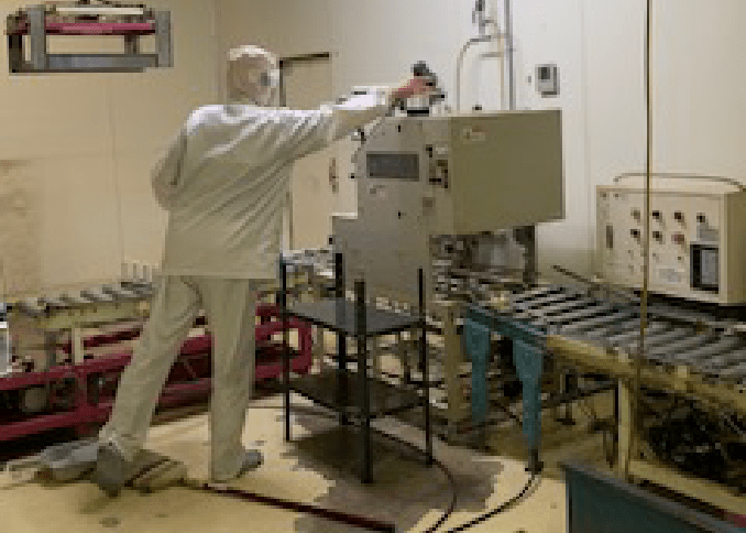 雑菌が入らないように、クリーンルームで培地に種菌を撒きます。