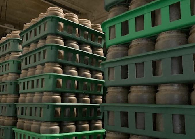 瓶に蓋をして培養室に移し、60日間培養します。室温は18度から20度で菌糸が満遍なく瓶内に行き渡るよう管理します。