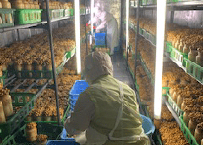 菌床栽培は、すべての工程を温度や湿度が管理された室内で行うため、生育が早く、安定して収穫することができます。しかし、わずかな条件の変化によって育ち方が変わるため、温度や湿度、種菌の選び方、栄養の配合、雑菌対策など、細やかな調整が求められます。