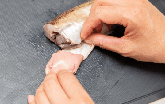 ハタハタは、頭を落として、内臓を取り除く。(小さなサイズのハタハタは、頭を落とさず使っても良い)