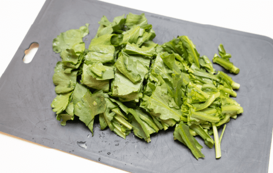 春菊(菊菜)は、食べやすい大きさのざく切りにする。