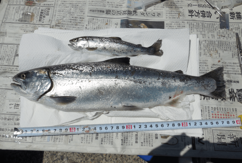 2013年の12月には、海水に馴らした銀化個体1万匹を宮崎県沿岸へと運び、翌2014年の4月中旬まで約8千匹の海面養殖に成功。その間にヤマメの体重は最大で約10倍に増え、巨大化することも判明しました。