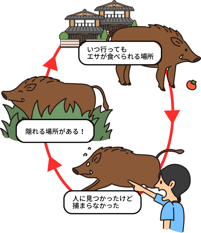 このように学習能力の高いイノシシから農作物を守るには、まず集落にエサとなるものがあることを学習させないことが重要といえるでしょう。