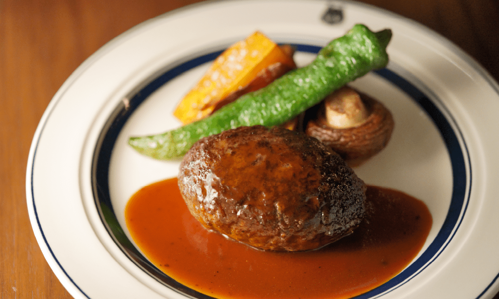 「素材を超えた味付けはしない」というエレゾゲートの料理。ハンバーグも肉の力強さがしっかりと感じられる。