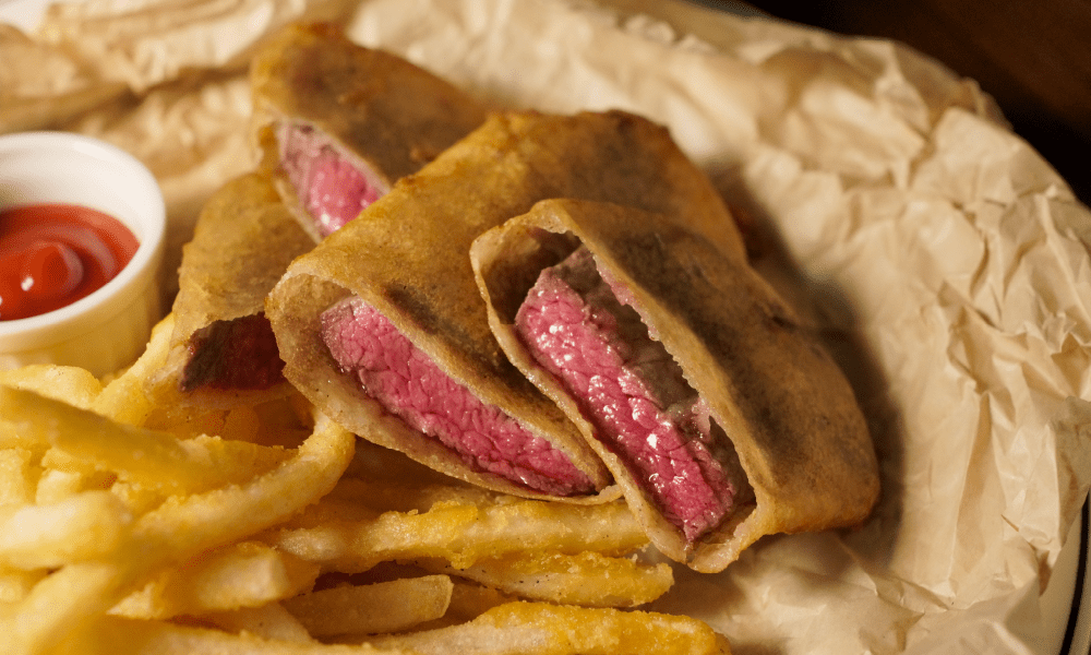 例えば、お店のオリジナルワインを作っているオーストラリアのワイナリーへ全社員で訪れたときに食べたフィッシュ&チップスからヒントを得て生まれた「ミート&チップス」。