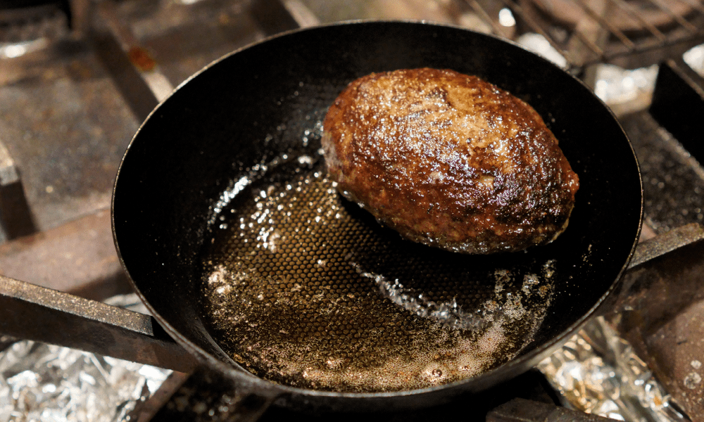 「肉の鮮度が保たれているので結着力が強く、つなぎはほぼ使わず、ハリのあるハンバーグに仕上げています。これにはエゾシカのウデ肉を使っています」と高橋シェフは教えてくれました。