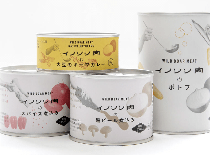 島根県美郷町のブランドイノシシ『おおち山くじら』 。地域住民が主体となって鳥獣被害対策からジビエ商品販売までを手掛けています。春から夏の農繁期に田畑を荒らすイノシシを捕獲。脂が少なく調理が難しい夏場のイノシシを自宅で簡単に楽しんでいただけるよう、シェフ監修のもと、煮込み料理の缶詰にしました。