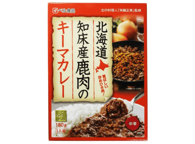 北海道産のエゾシカ肉を北海道産玉ねぎと香ばしく炒め、素材のおいしさを引き出すために手間ひまをかけた、シカ肉のコクと旨味の引き立つキーマカレー。ジビエは高価なイメージがありますが、エゾシカのおいしさをもっと知ってもらい、日常使いができるよう、牛肉、豚肉を使用した他のカレーシリーズ商品と同じ価格で提供。