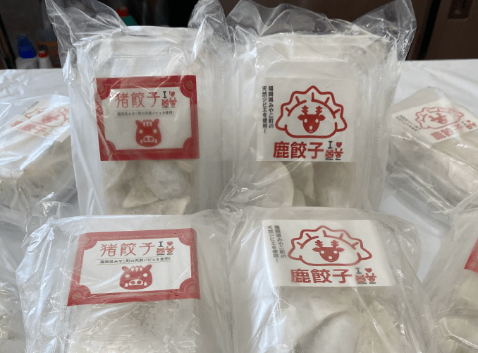 福岡県みやこ町は、ジビエを特産品にしています。直売所と加工施設を運営する(有)犀川四季犀館は、今年「ジビエ餃子(猪・鹿)」を発売しました。焼くだけ・揚げるだけで、手軽に家庭でジビエ料理が楽しめます。