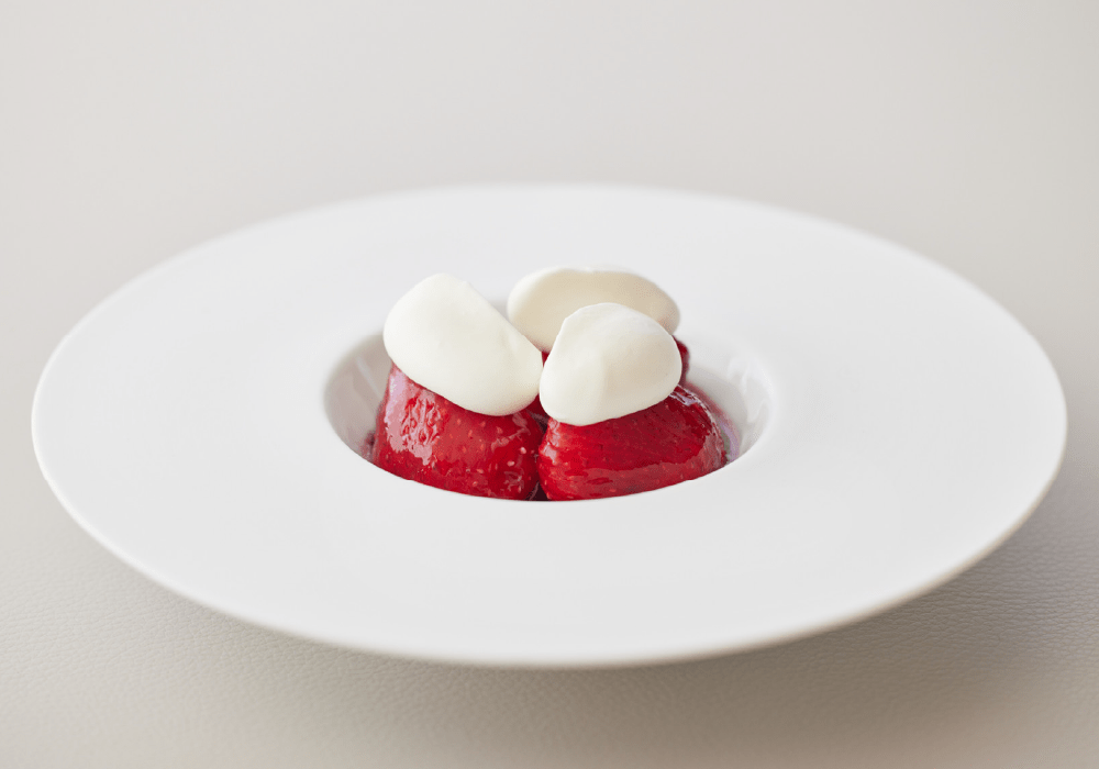 魚であれば、どこの地域の海で、またどのくらいの水深のところで獲れたものかを把握するように心掛けています。同じ種類でも産地によって味が違いますからね。また、果実の品質の高さも日本ならではだと思います。本当に完璧で、とても甘い。中でも桃は柔らかく、熟していて、美味しいと感じるのですが、ヨーロッパのものとは味わいが違います。その“違い”を理解し、日本の果実の魅力をより引き出せるような形で調理することを心がけています。