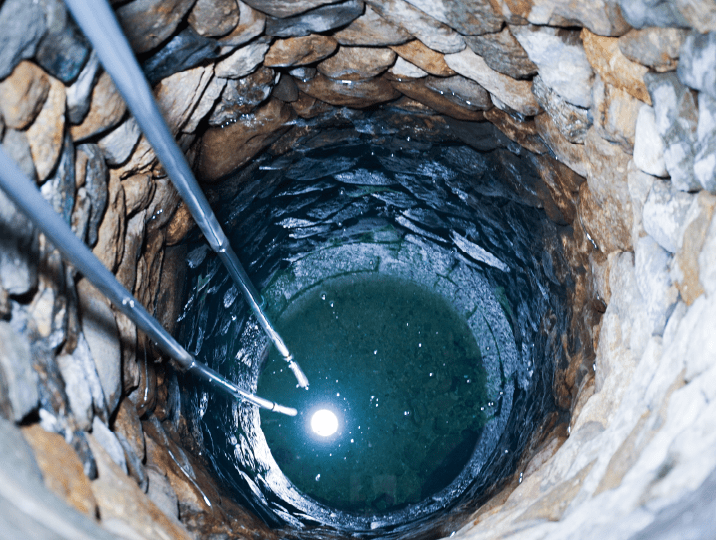 (左上)本社脇にある蔵の中の井戸からは折爪馬仙峡の伏流水が湧き出ている。