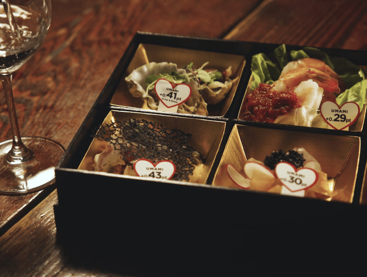 その際に、どれだけうま味が増幅するのかをスコアで表現したコンテンツも用意し、魚介類を使った料理と日本酒の相性を知ってもらうことが目的でした。また、このとき提供した日本酒にはQRコードつきのネックタグをつけ、それを読み込むと動画で参加事業者の蔵元バーチャルツアーが楽しめる仕掛けも用意しました。これらがSNSなどで拡散されたことで、日本酒と魚介類のペアリング(料理との相性の良さ)を多くの人に知ってもらう機会を創出することができました。