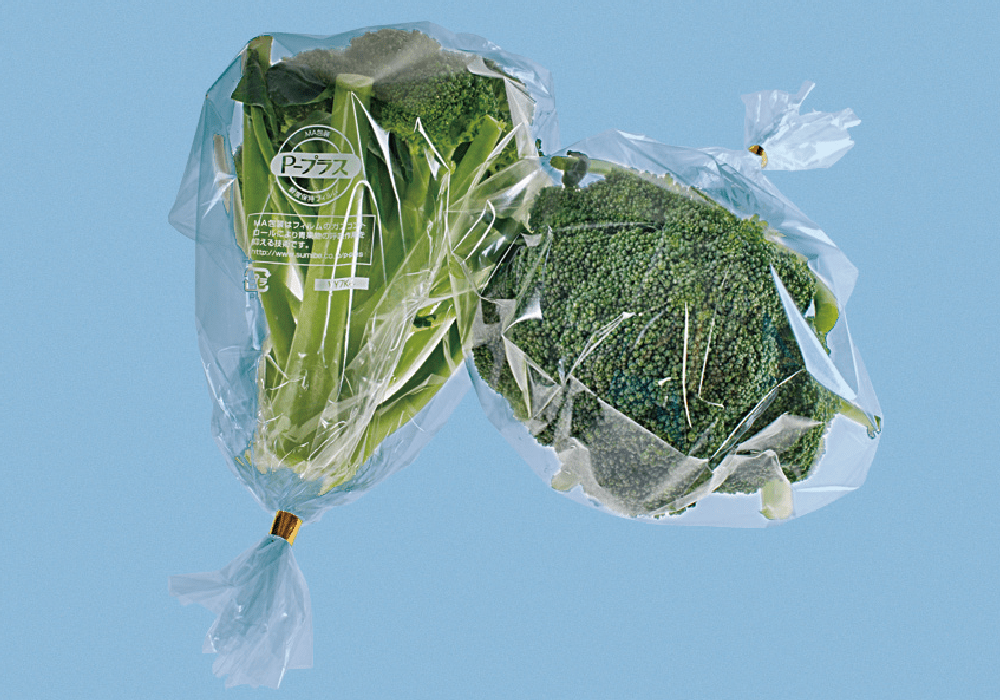 MA包装のひとつで、小さな穴が青果物の呼吸量を緻密にコントロールし、より長く鮮度を保つことができる包装資材「P-プラス®」を紹介します。