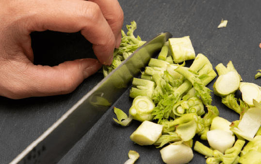 たらの芽は、はかまと根元の周りの固い部分をとり、1センチメートル程度の長さに切る。