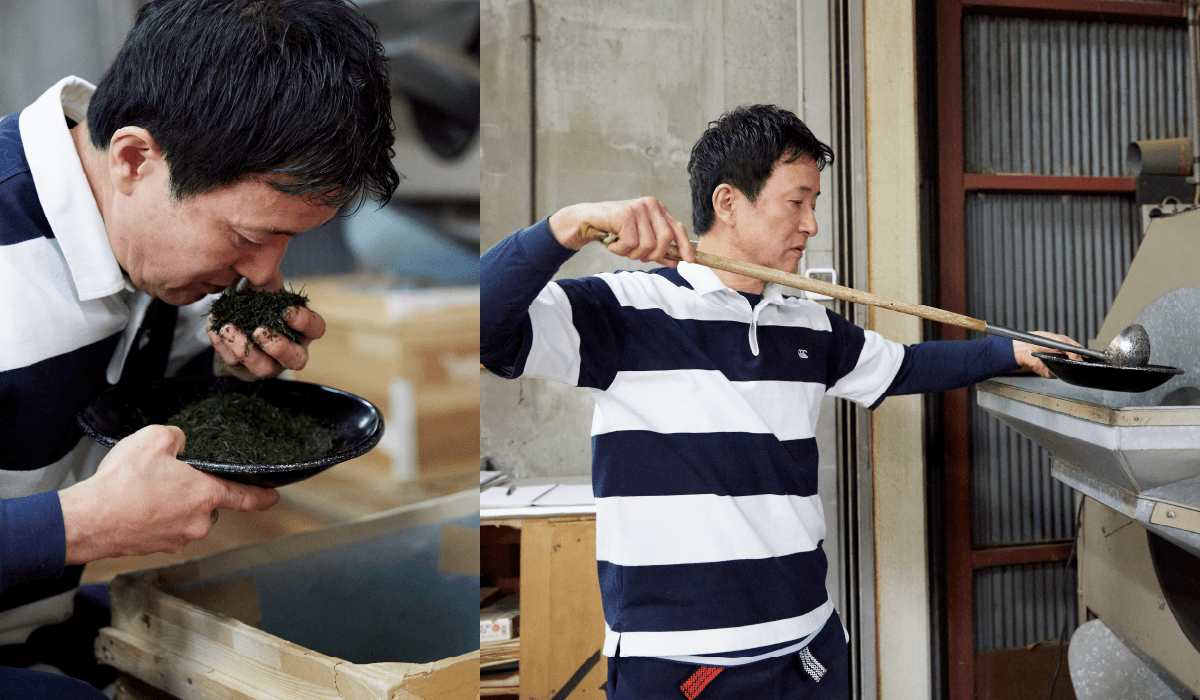 茶師の仕事を始めて今年で35年になります。茶師とはお茶の仕事に関わる人全般を指すのですが、茶葉を生産者の方々から仕入れて、火入れ、合組(ごうぐみ ※ブレンドすること)などを行い製品にして、卸業者や小売店などに卸すというのが主な仕事です。学生の時は消防士になろうと思った時期もありましたが、祖父からの「茶師に」という想いを受け、目指すようになりました。当初はどんなお茶を仕入れたらいいかもわからなかったのですが、とにかくお茶をよく見て、茶葉の香りをかぐということを続けました。そうすると徐々にですが、いいお茶を感覚的に理解できるようになったのです。